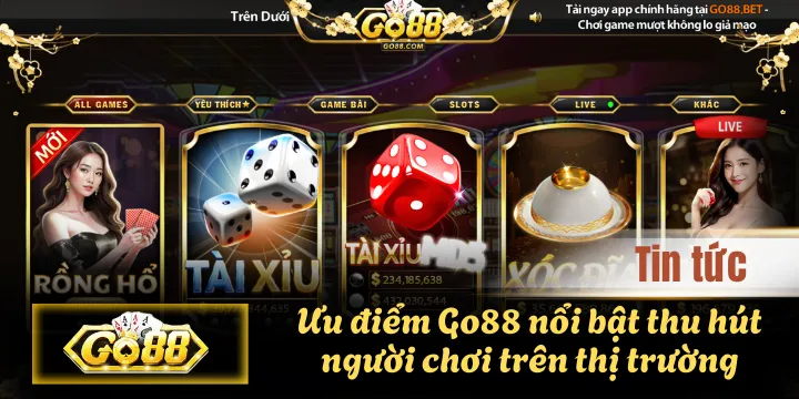Đến với Go 88, người chơi sẽ được trải nghiệm không gian game bài trực tuyến đẳng cấp quốc tế với các đầu game như: game đánh bài, slot nổ hũ, tài xỉu, xóc đĩa, bắn cá, lô đề… và nhiều thể loại game đổi thưởng khác.